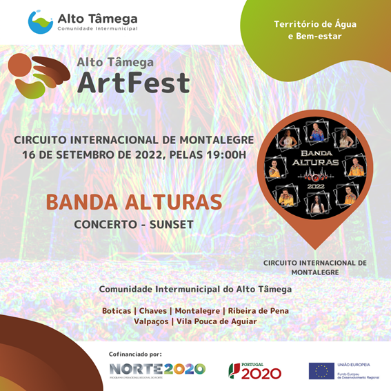 O Circuito Internacional de Montalegre vai ser o palco da atuação da Banda Alturas na sexta-feira, dia 16 de setembro, pelas 19 horas. Mais um espetáculo inserido no projeto Alto Tâmega – ArtFest. O projeto ArtFest (NORTE-04-2114-FEDER-000455) é uma iniciativa da Comunidade Intermunicipal do Alto Tâmega (CIMAT) que prevê a realização de 48 momentos de promoção cultural e animação do território, envolvendo grupos musicais e de teatro, ranchos folclóricos e academias de dança, apoiando os agentes culturais da região que foram fortemente afetados pela pandemia causada pela COVID-19.