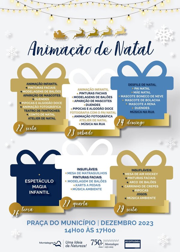 A Praça do Município de Montalegre acolhe um leque de atividades natalícias inseridas na programação da "Animação de Natal" desenvolvida no interior da tenda gigante instalada em frente ao edifício da Câmara Municipal. Em paralelo, decorre, nos mesmos dias e no mesmo horário (14h00-17h00), o "Mercado de Natal" onde poderá adquirir os produtos locais do concelho.
