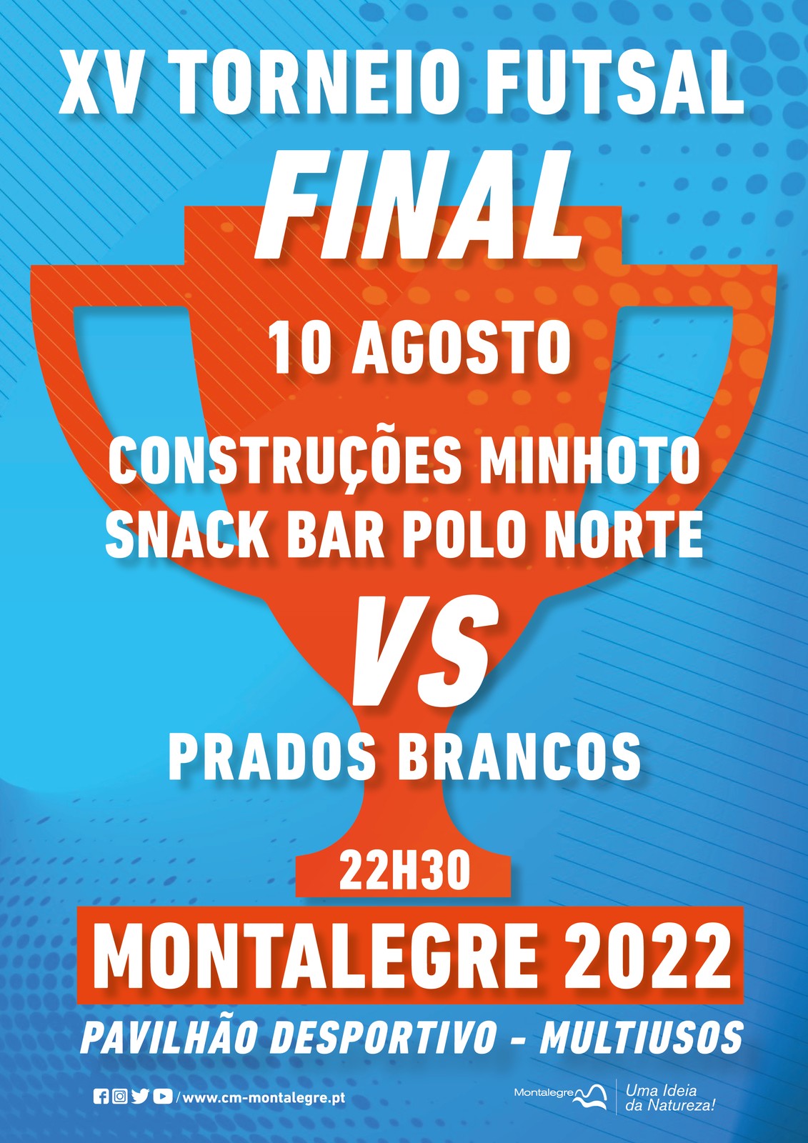 Realiza-se hoje à noite, no pavilhão desportivo de Montalegre, pelas 22h30, a final do XV Torneio de Futsal. Uma hora antes tem lugar a atribuição do terceiro e quarto lugares. Um evento que tem sido um sucesso, com a bancada do pavilhão lotada em permanência. Confira no cartaz que ilustra esta informação as equipas finalistas.