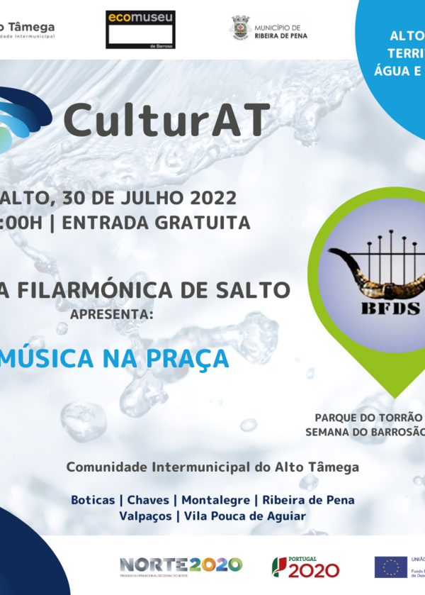 A Banda Filarmónica de Salto vai atuar, no próximo sábado, pelas 17h00, no Parque do Torrão da Veiga, em Salto, no âmbito do Projeto CulturAT – Promoção Turística do Alto Tâmega através da Cultura. Esta é uma iniciativa da Comunidade Intermunicipal do Alto Tâmega (CIMAT), em parceria com o município de Ribeira de Pena e o Ecomuseu de Barroso.