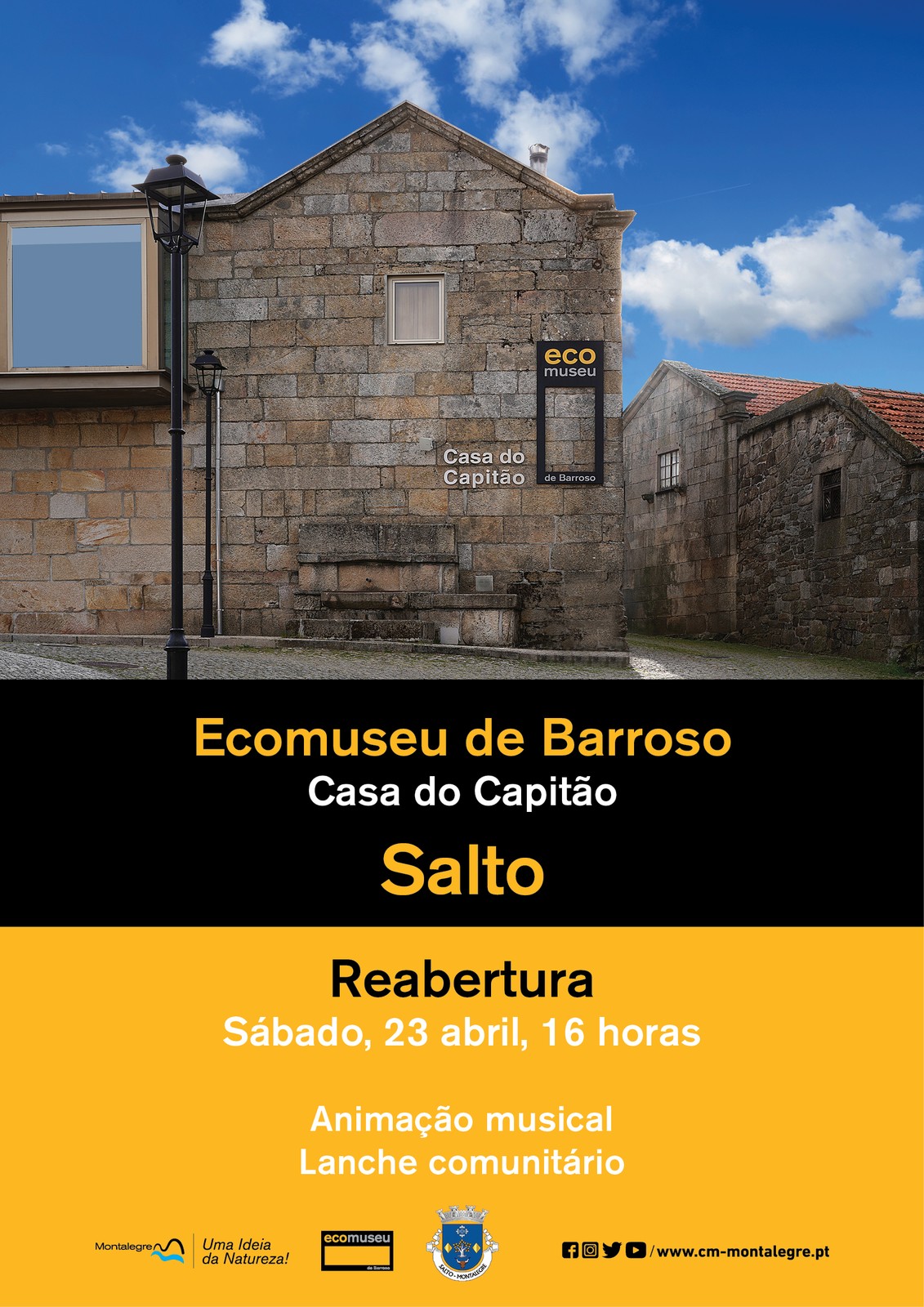 Após um longo tempo de ausência, a Casa do Capitão (Salto) reabre portas este sábado, pelas 16 horas. Reforça-se, desta forma, a oferta cultural do Baixo Barroso através da reabertura de um espaço emblemático da vila de Salto. A matriz de casa de lavoura tradicional foi mantida, sendo possível ao público descobrir o modo de vida barrosão através dos artefactos de uso quotidiano em exibição. A par do Museu, reabrem os serviços de Biblioteca e o Espaço Wi-Fi. Para assinalar o dia, este pólo do Ecomuseu de Barroso inaugura duas exposições temporárias: "Barroso, a Cultura de um Povo…", alusiva a panfletos e cartazes pertencentes à coleção do padre Fontes e "Tradições que nunca se perdem", mostra de escultura em madeira da autoria do barrosão João Félix.