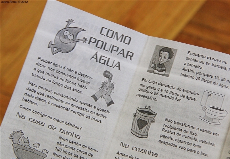 Após a curta palestra, teve lugar o regresso ao local onde a torneira "avariada" pingava. O espanto foi muito quando os mais petizes puderam verificar que, em cerca de 30 minutos, o volume de água contido no recipiente superava o meio litro. Nessa linha, foram transmitidos, em linguagem simples e com exemplos práticos, formas de poupar água e diminuir o desperdício corrigindo alguns maus hábitos.