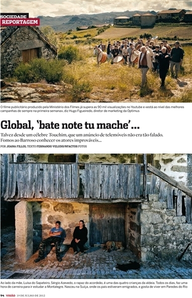 Ultrapassadas as 90 mil visualizações, Aldeia Global, publicidade de verão da Optimus, continua ser um sucesso. Este sucedido atraiu a comunicação social e a revista Visão rumou até Montalegre para melhor perceber os bastidores e conhecer os atores. Fieis à arte de bem receber, os barrosões abriram a portas de casa e o coração aos jornalistas. O sentimento de orgulho por aparecer na televisão e promover a terra é comungado por todos. Ficam assim retratadas, em três páginas, as emoções vividas com a gravação deste anúncio.