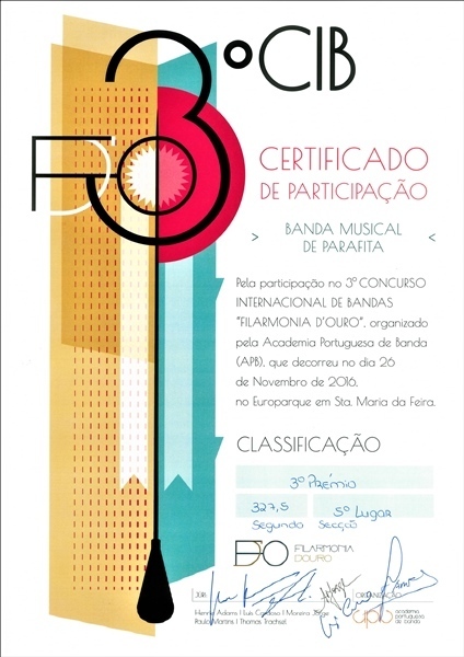 Única participante de Trás-os-Montes, a banda musical de Parafita concorreu no terceiro concurso internacional de bandas "Filarmonia D’Ouro" realizado no grande auditório do Europarque em Santa Maria da Feira. No final, a coletividade barrosã levou para casa um honroso terceiro prémio com o quinto lugar alcançado.