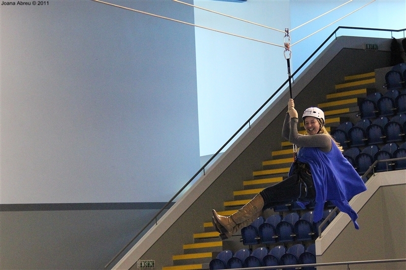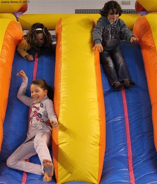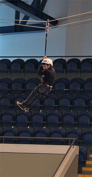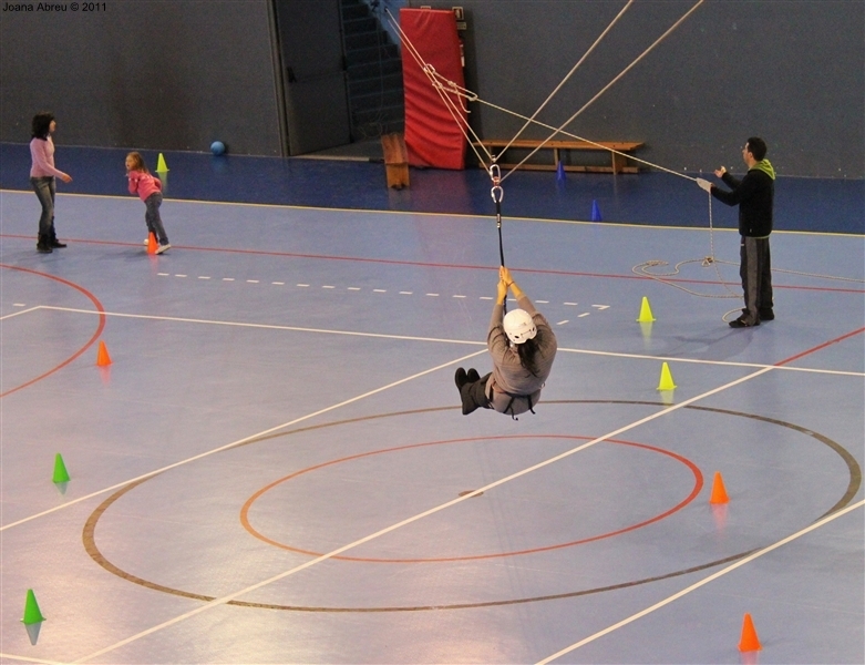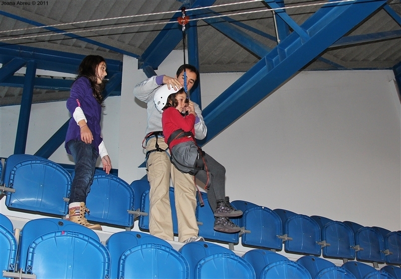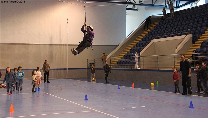 É prática comum juntar os filhos dos funcionários da Câmara Municipal de Montalegre e assinalar a quadra natalícia. Um leque variado de ações foi planeado para uma tarde que deleitou os mais novos e também os adultos presentes. Entre jogos de bola, brincadeiras num insuflável, o que mais fez brilhar os olhos foi a possibilidade de atravessar pelo ar, na diagonal, o complexo desportivo do pavilhão multiusos. Os meninos adoraram e os de mais idade, pais ou acompanhantes, também experimentaram.