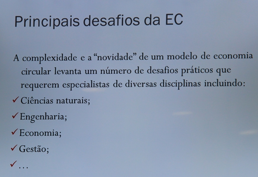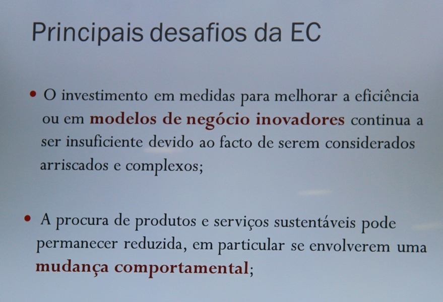 Nesta ótica, os entendidos afinam para o modelo de economia circular, isto é, «uma abordagem à produção e ao consumo que permite desenvolver inovação, novos produtos, serviços e novos modelos de negócio, que contribuem para um relacionamento mais equilibrado, e criativo, entre empresas, consumidores e recursos naturais». Foi dito que os desafios são muitos, desde logo pelo alto valor de complexidade na sua implementação. Exige uma gama de especialistas de áreas como as ciências naturais, engenharia, economia, gestão, sociologia, antropologia, psicologia...entre outras. Uma mudança de comportamentos que obriga, por exemplo, as empresas a necessitarem de sensibilização, conhecimentos e de ter capacidade de encontrar soluções no âmbito do termo "Economia Circular".