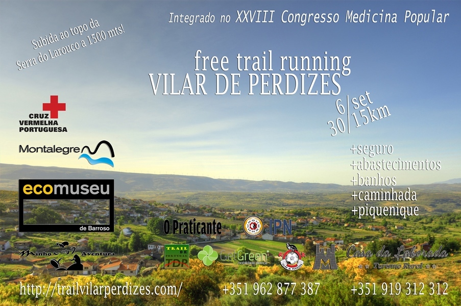 Integrado no XXVIII Congresso de Medicina Popular, realiza-se no dia 6 de Setembro o "Free Trail Running" de Vilar de Perdizes. Trata-se de uma corrida de montanha, dividida em dois trilhos (longo – 30 km | curto – 14km), que vai levar os participantes até ao topo da serra do Larouco. Além deste percurso, foi pensada uma caminhada. Denominado “Rota do Contrabando”, este trilho marca passagem por locais históricos de Vilar de Perdizes. As inscrições neste evento são gratuitas e obrigatórias. Devem ser efetuadas até dia 31 de agosto.Mais informações em: http://www.trailvilarperdizes.com/