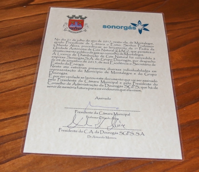 Coube a Armando Moreira, presidente do conselho de administração da Dourogás - grupo de empresas a que pertence a Sonorgás, S.A. e a quem foi concedida pelo Governo, em concurso público, a licença de distribuição desta energia - a tarefa de explicar à plateia as caraterísticas do projeto. O antigo presidente da Câmara de Vila Real falou da felicidade pelo momento vivido ao mesmo tempo que recordou os tempos de autarca onde pugnou pela vinda deste tipo de energia para o interior, comparando mesmo a sua chegada com a da eletricidade, do telefone ou da água canalizada: «o gás natural é a energia mais económica e limpa. O seu preço é muito reduzido quando comparado com todas as alternativas, melhora os custos de produção e aumenta, por essa via, a competitividade das empresas. É um considerável apoio ao desenvolvimento regional e a todos os que aqui vivem». Além de evidenciar as qualidades técnicas do gás natural, valorizou, também, os seus aspetos ecológicos, já que reduz a emissão de poluentes, por se tratar do combustível fóssil mais limpo. Ao mesmo tempo, foi dito que oferece grande segurança, pois sendo mais leve que o ar, em caso de fuga, dissipa-se rapidamente na atmosfera. Benefício que permite a utilização em caves, restaurantes e habitações.