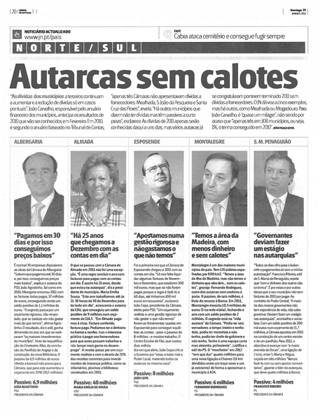 Em 2010, e segundo o anuário baseado no Tribunal de Contas, «apenas três Câmaras não apresentavam dívidas a fornecedores: Mealhada, S. João da Pesqueira e Santa Cruz das Flores», revela.