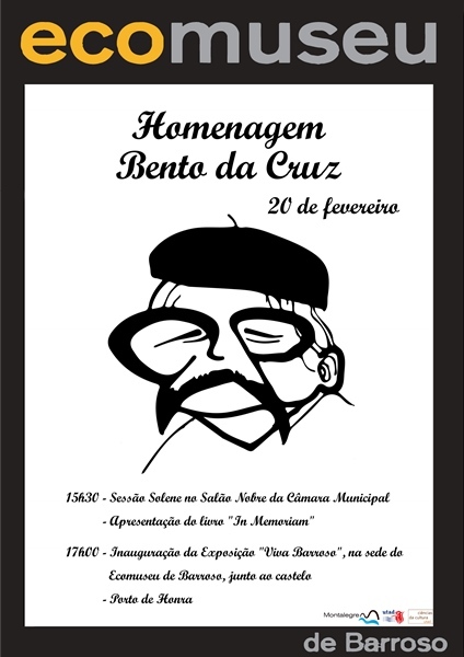 Falecido há poucos meses, o escritor barrosão Bento da Cruz é alvo de uma homenagem promovida pelo município de Montalegre com o apoio da Universidade de Trás-os-Montes e Alto Douro e do Grupo de Ciências da Cultura da UTAD. Entre várias ações, é apresentado publicamente, no salão nobre da autarquia, o livro "In Memoriam - Bento da Cruz" e inaugurada, na sede do Ecomuseu de Barroso, uma exposição intitulada "Viva Barroso" sobre a vida e obra do escritor, organizada no âmbito de um protocolo de cooperação entre a Câmara de Montalegre e a UTAD, através dos ciclos de estudos em Ciências da Cultura. Esta jornada cultural acontece este sábado a partir das 15h30.