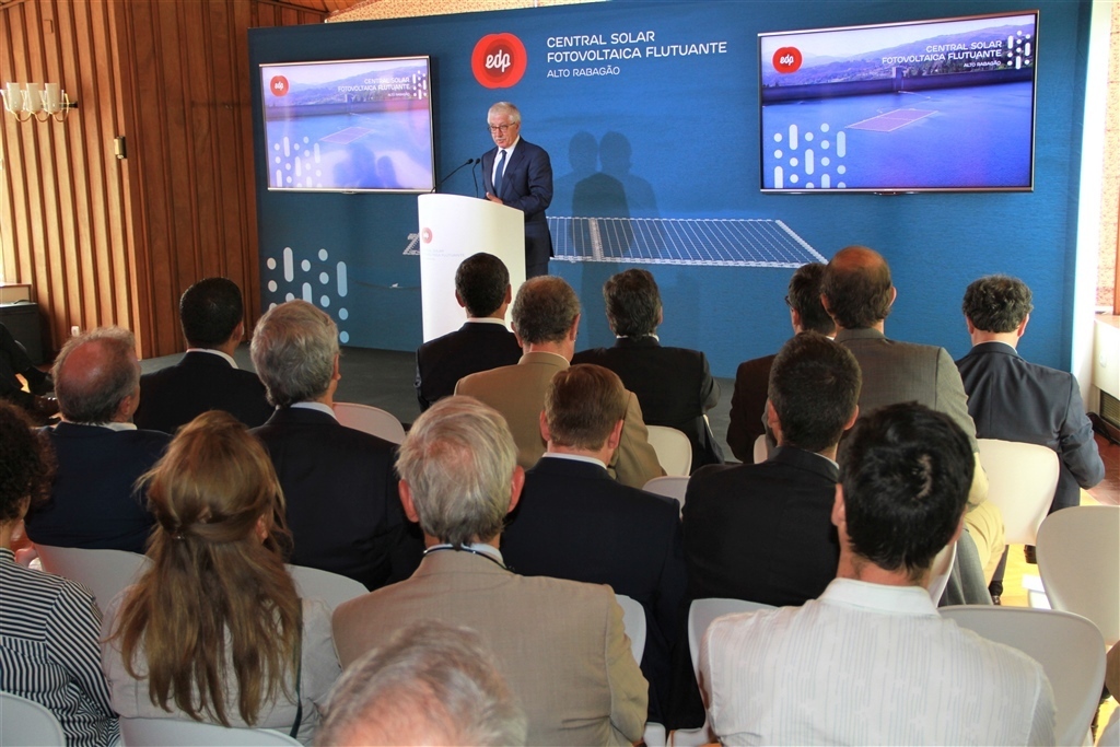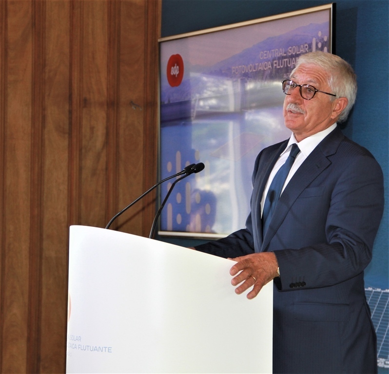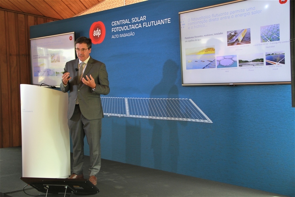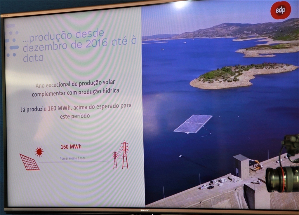 «O conceito novo é a hibridização da energia solar com a energia hídrica. Temos aqui uma complementaridade que é óbvia, ou seja, quando temos mais sol temos produção fotovoltaica, quando temos mais água temos mais produção hídrica. O que fazemos é combinar estas circunstâncias para poder escoar no mesmo ponto de ligação as duas energias. O efeito da água e do vento provoca um arrefecimento dos painéis e aumenta o rendimento na produção de energia e, assim, verificamos um fenómeno inverso quando comparamos com as soluções fotovoltaicas em terra, além de outras vantagens adicionais. A produção até ao momento ultrapassou as nossas expectativas».
