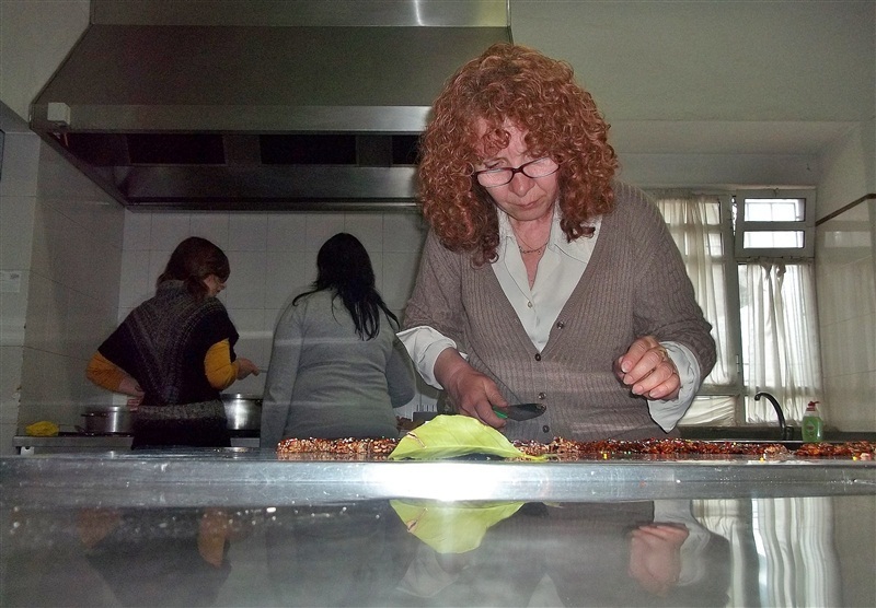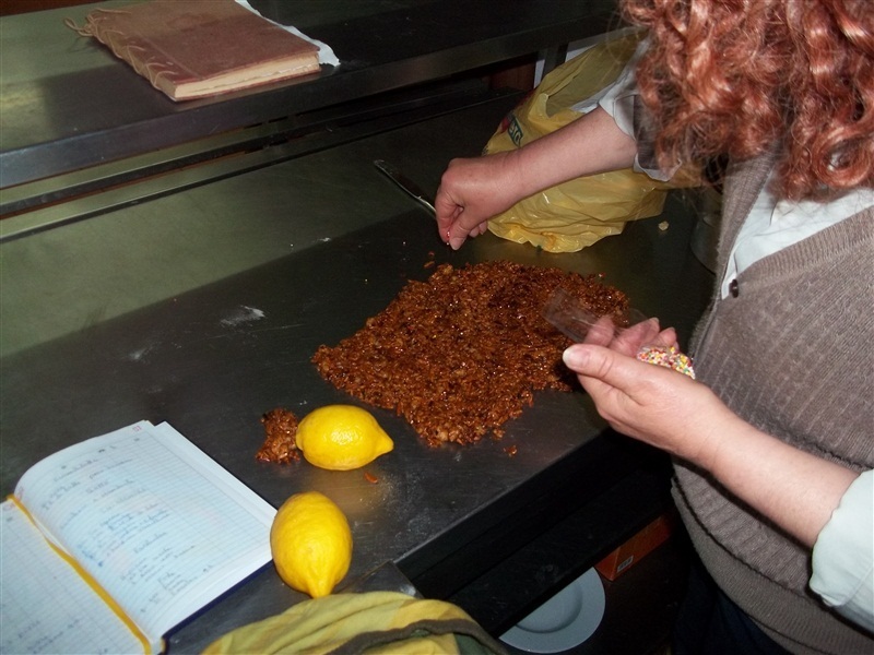 Giampaolo Spiga, policia, faz miniaturas dos murais de San Sperate na Sardenha e Santina Spiga, reformada, mostrou um pouco da culinária de San Sperate. Pertencem os dois à associação "No Arte Paseo Museo San Sperate".