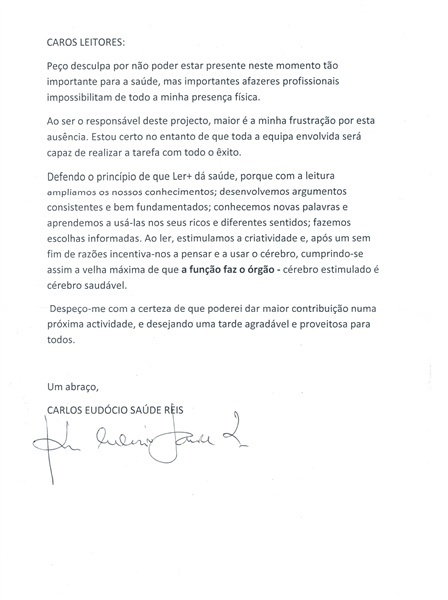 O projecto "Ler + dá saúde", lembre-se, está inserido no programa elaborado para este mês pela biblioteca de Montalegre intitulado "Abril Livros Mil". A ideia desta acção foi «envolver os profissionais do Centro de Saúde no aconselhamento da leitura em família».
