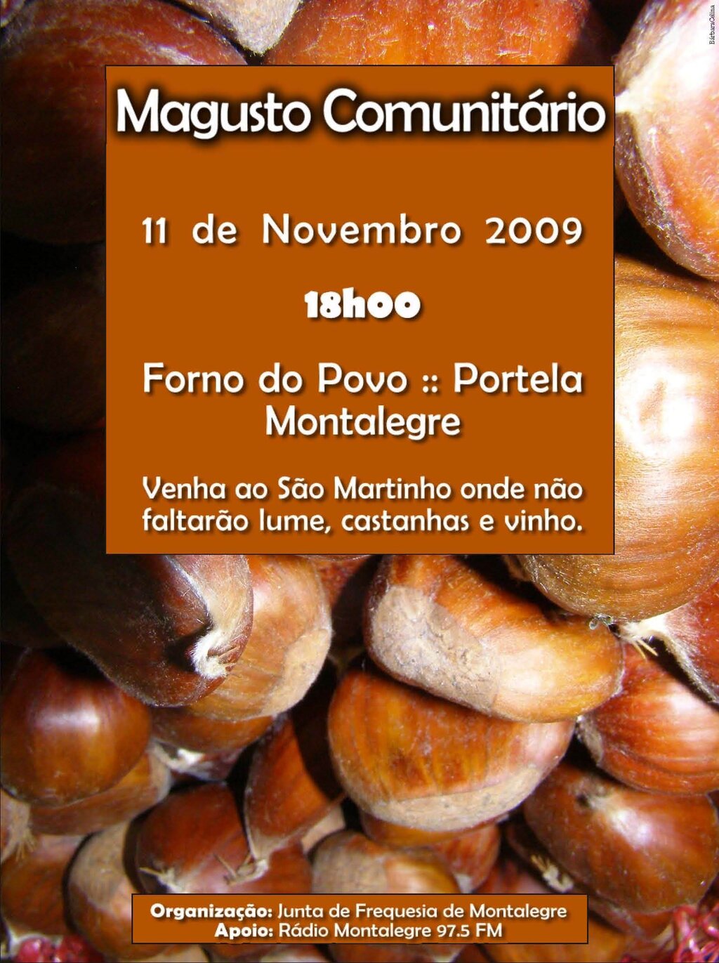 Hoje, dia de São Martinho, realiza-se no forno do povo de Montalegre, pelas 18 horas, um magusto comunitário aberto a toda a população. Esta iniciativa é promovida pela junta de freguesia.