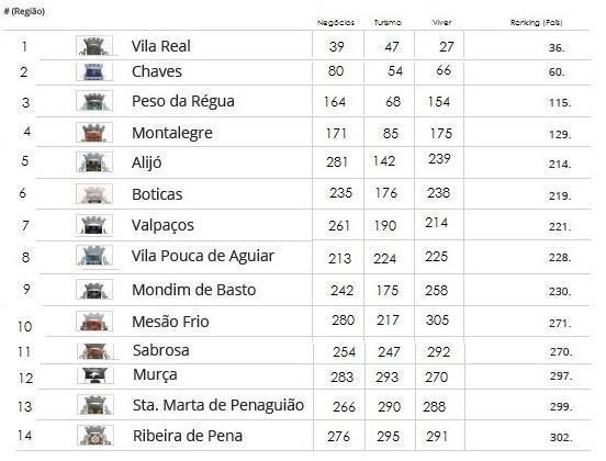 No ranking nacional dos 308 municípios portugueses, Montalegre ocupa o lugar 129 da tabela. Por sua vez, Vila Real entra pela primeira vez no Top 10 regional do Norte, num ano caracterizado por uma melhoria significativa da performance, que conta com mais de um quarto das pesquisas on-line sobre "Negócios, Visitar e Viver" de todos os municípios portugueses, sendo a primeira classificada no distrito nos indicadores que medem a qualidade de vida, o turismo e o ambiente para fazer negócios. No reverso da medalha, isto é, os municípios com menos atratividade, segundo este estudo, são Santa Marta de Penaguião (13ª posição distrital e 299ª nacional) e Ribeira de Pena (último lugar distrital e 302ª posição nacional).