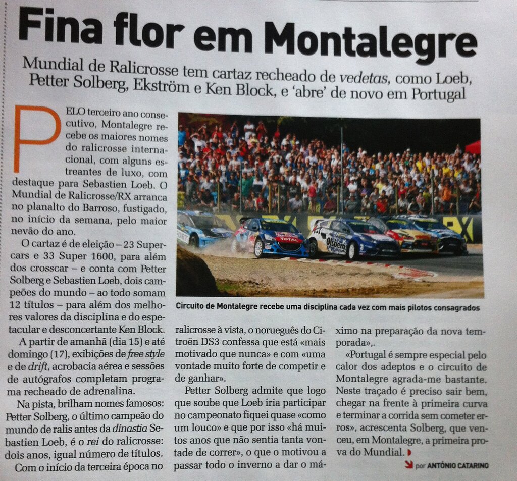 Tal como tem sucedido com a imprensa galega, também a portuguesa tem revelado interesse na prova do Mundial Rallycross que Montalegre acolhe ao longo deste fim de semana. Um foco que prova o impacto de um evento a todos os níveis fantástico e que projeta o concelho para a primeira linha mundial em matéria desportiva.