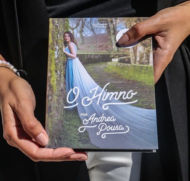 A artista Andrea Pousa, acompanhada pelo Bruxo Queiman, partilhou, hoje, simbolicamente, com o município de Montalegre (representado pelo vice-presidente, David Teixeira), o trabalho discográfico, referente à nova versão do hino galego. O ato traduz-se no reconhecimento que os artistas têm vindo a conquistar na região. Consta deste projeto (CD, DVD e Livro), entre outros, um depoimento ímpar do padre Fontes, a enaltecer o duo. A intérprete destapou, ainda, parte do véu, ao confidenciar que, para breve, será apresentada uma música relacionada com a "Sexta 13".
