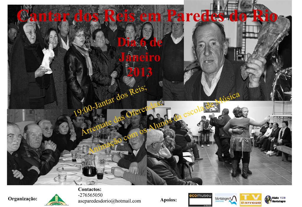 Dando sequência ao que tem sido feito em anos anteriores, a Associação Social e Cultural de Paredes do Rio promoveu o "Cantar dos Reis", evento que contou com o apoio da Câmara Municipal de Montalegre e Ecomuseu de Barroso. O tradicional jantar, o arremate das oferendas e a habitual animação não faltaram. José Carlos Moura, presidente da Associação Social e Cultural de Paredes do Rio, mostrou-se satisfeito no final e fez «um balanço positivo da atividade». Toda a receita «da festa reverte a favor da igreja» e «envolve toda a comunidade».