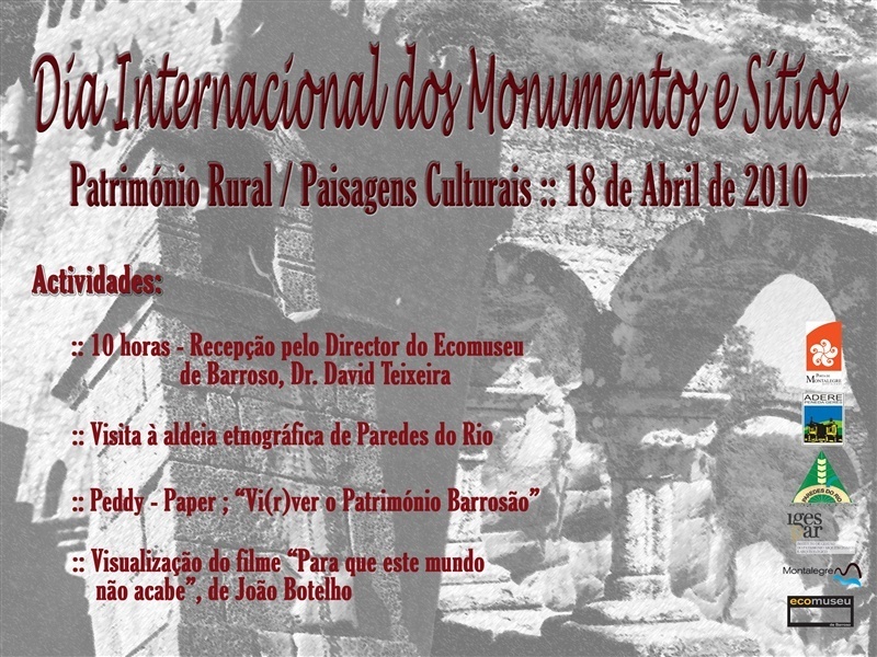 No Dia Internacional dos Monumentos e Sítios (18 Abril) as cinco portas do Parque Nacional da Peneda-Gerês (PNPG) promovem actividades subordinadas ao tema "Património Rural/Paisagens Culturais". Na porta de Montalegre, os forasteiros são convidados a visita o Ecomuseu do Barroso, a partir das 10 horas. Uma hora mais tarde, o programa prossegue com a visita interpretada à aldeia de Paredes do Rio.