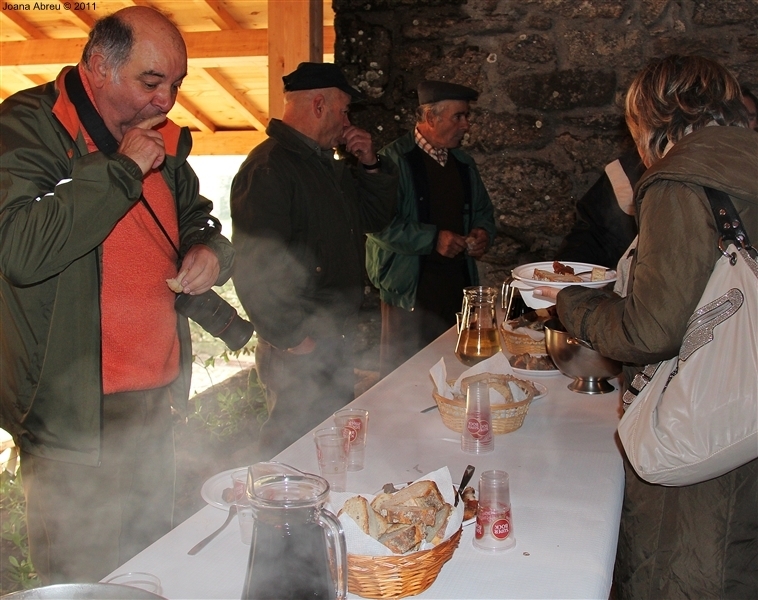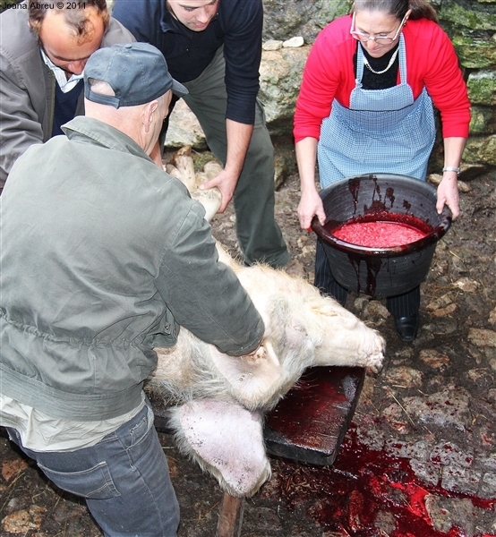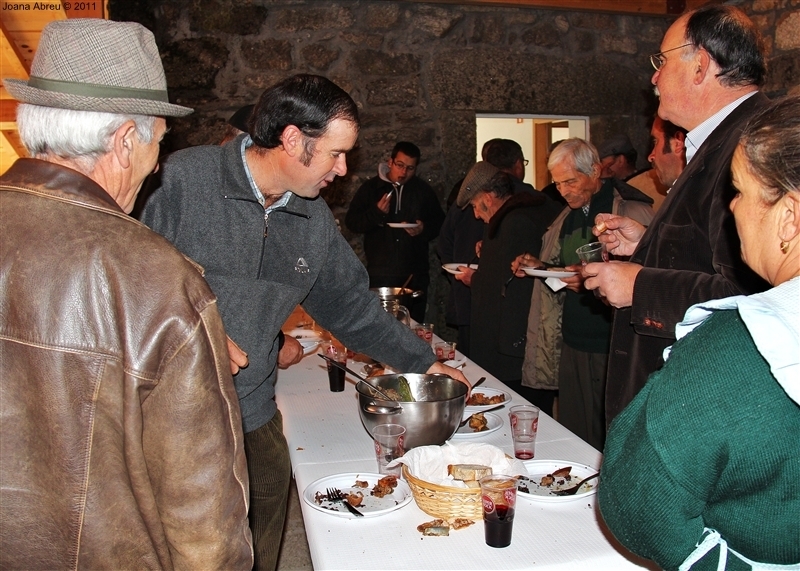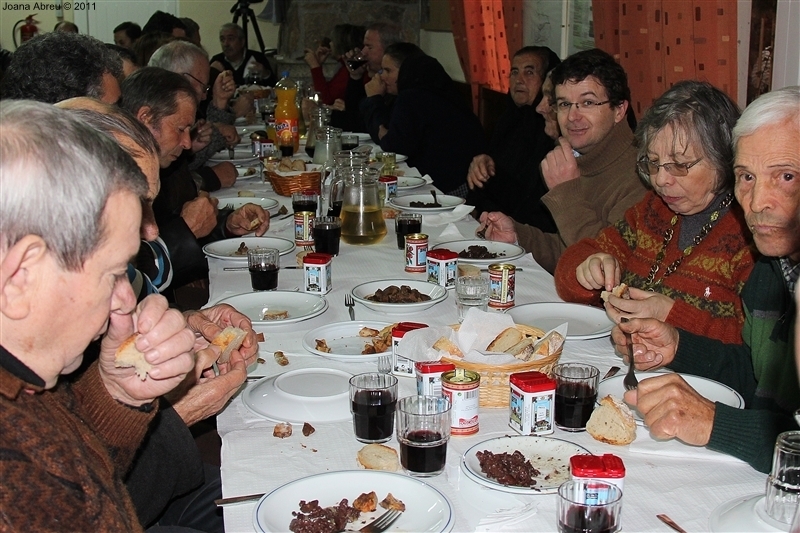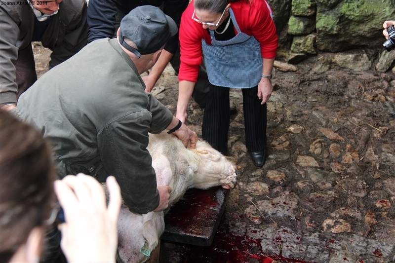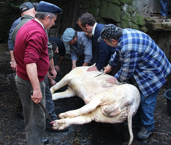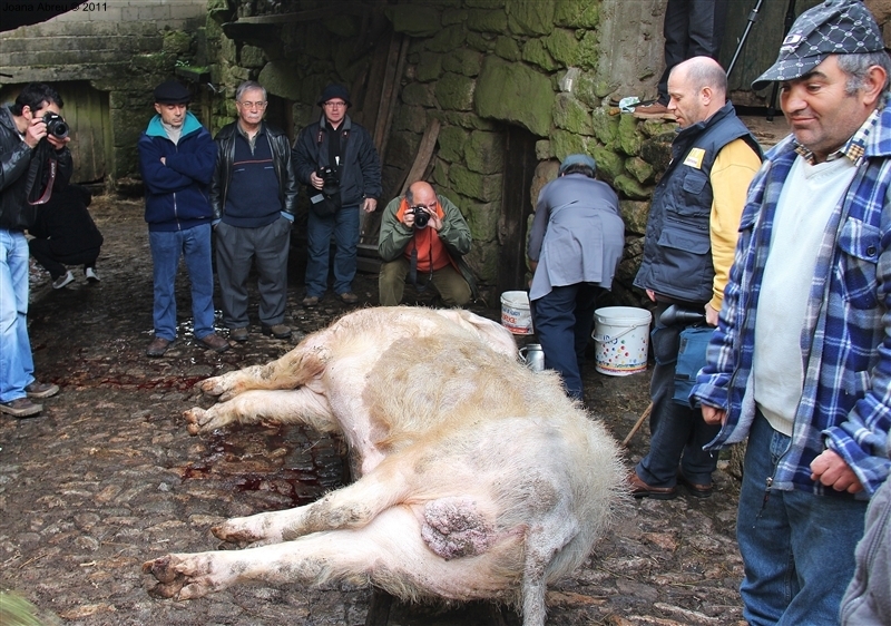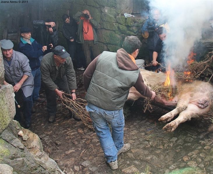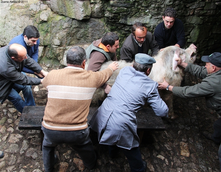 Um porco incomum, no peso e na fisionomia, foi o protagonista da jornada perante os olhares, alguns de espanto, de um cortejo que pisou uma das principais ruas da aldeia. Os curiosos seguiram atrás do animal que, assustado, perdia força nas pernas e não queria continuar. Já na eira, foi travada a luta "homem-porco". Perto de uma dezena de homens conseguiram dominar o animal e foi em clima de espanto e satisfação que todos assistiram ao processo de matança, limpeza e abertura do porco.