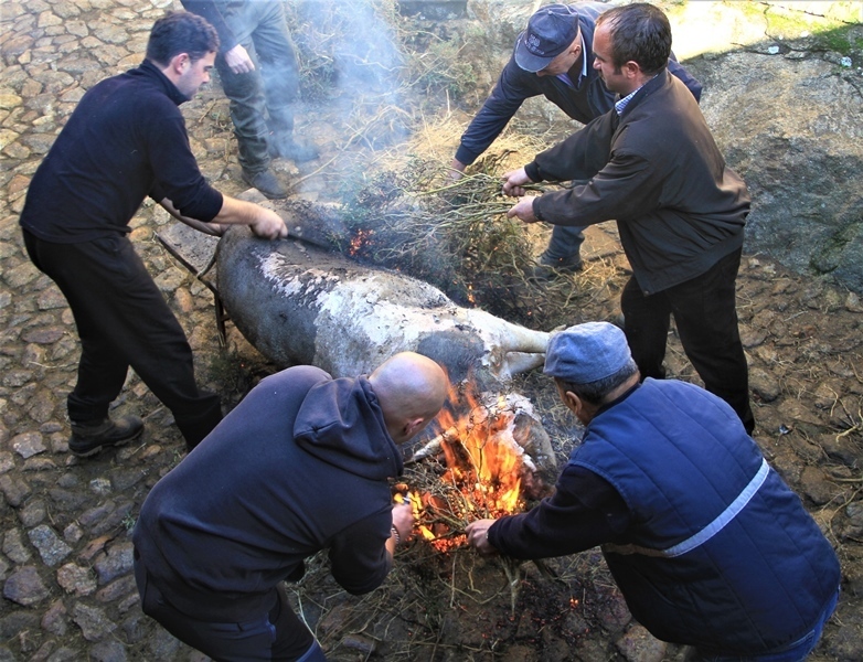 O processo de matança e desmancha do porco decorreu sobre a vigilância do veterinário municipal e de acordo com as regras impostas pela legislação que permite uma matança anual por associação cultural ou recreativa. Domingos Moura sensibilizou os presentes para o facto de «o abate ser feito de forma a minimizar o sofrimento do animal, utilizando um mecanismo que o deixa sem reação». No almoço foi servido o tradicional cozido à barrosã. A animação ficou a cargo do artista da terra Luís Pedreira e da visitante Cláudia Martins do conhecido grupo "Minhotos Marotos" que, espontaneamente, contribuiu para a festa.