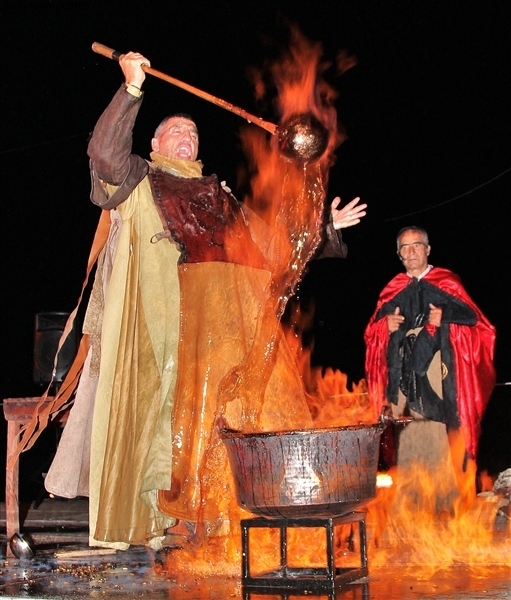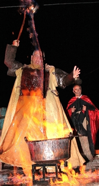 A noite alta de animação do Congresso de Medicina Popular contou com duas atuações. A primeira, a cargo da companhia de teatro Filandorra, encheu o espaço da feira. Falamos da dramatização da peça “À Manhã”, de José Luis Peixoto. Esta ocasião foi do agrado de todo o público que esperava, ansioso, pelo momento da queimada. Essa, foi protagonizada pelo já conhecido Bruxo Queiman, ator que tem abrilhantado as últimas edições da Sexta 13. Com um discurso emotivo, padre Fontes acompanhou o artista espanhol e esconjurou a bebida pela qual todos esperavam. O néctar abençoado foi servido e ninguém quis abandonar o recinto sem o degustar.